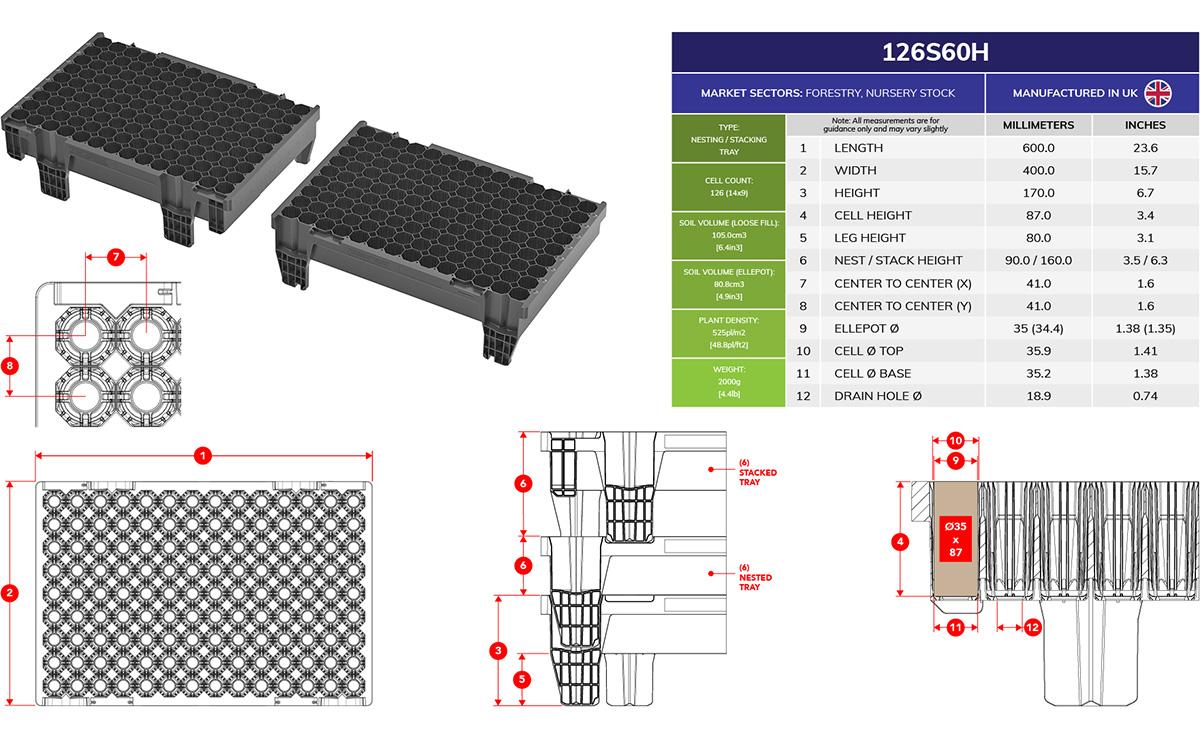 Produsul ideal pentru cultivatorii de plante forestiere sau ornamentale lemnoase care doresc să-și propagă plantele într-un recipient pentru tăiere cu aer, din care acestea pot fi apoi transplantate într-un recipient mai mare sau direct în locația finală. Designul unic al celulelor ajută la tăierea cu aer a vârfurilor rădăcinilor și oferă un drenaj și o aerare excelente.
