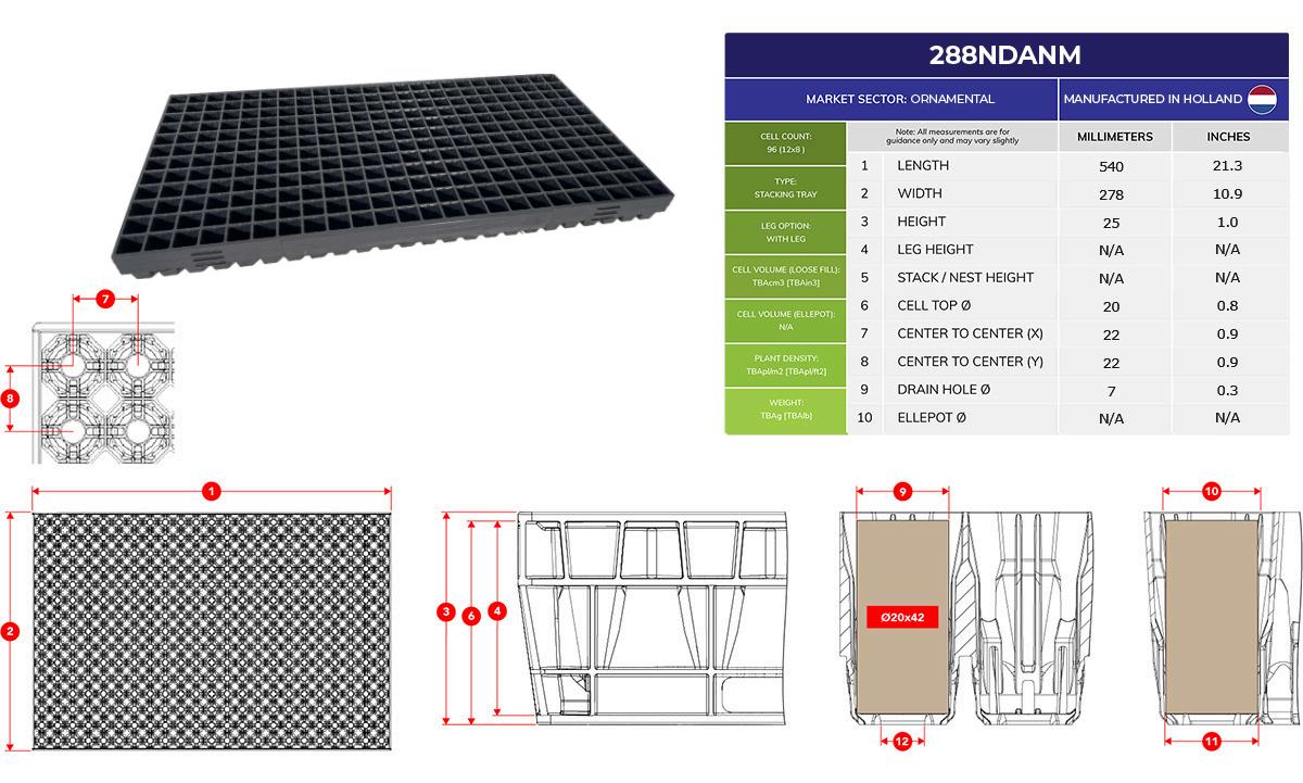 • Interschimbabilă cu tăvile existente cu 345 de celule și echipamentele utilizate în prezent.